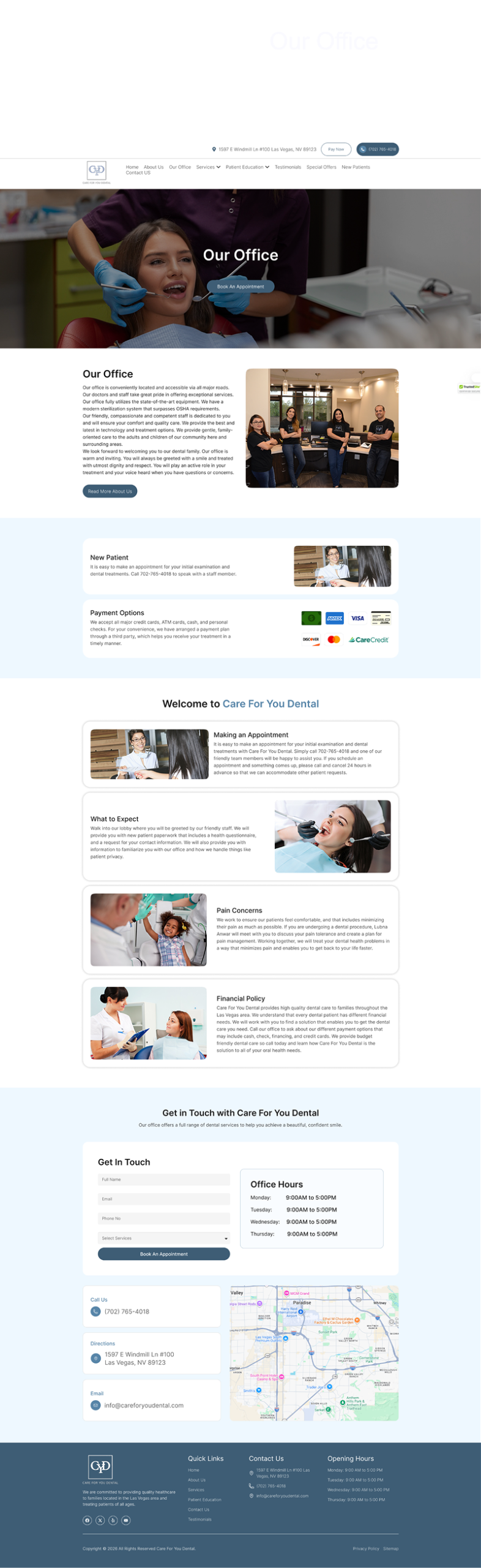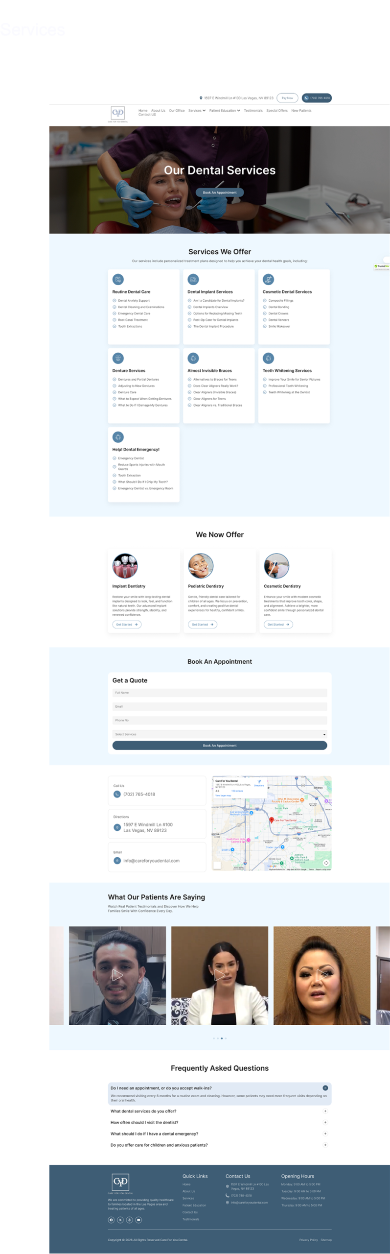 Care For You Dental is a modern dental clinic dedicated to providing high-quality general, cosmetic, and restorative treatments in a comfortable and patient-focused environment. This website redesign project was created to enhance the clinic’s digital presence, improve user experience, and simplify the appointment booking journey for patients seeking reliable dental care.