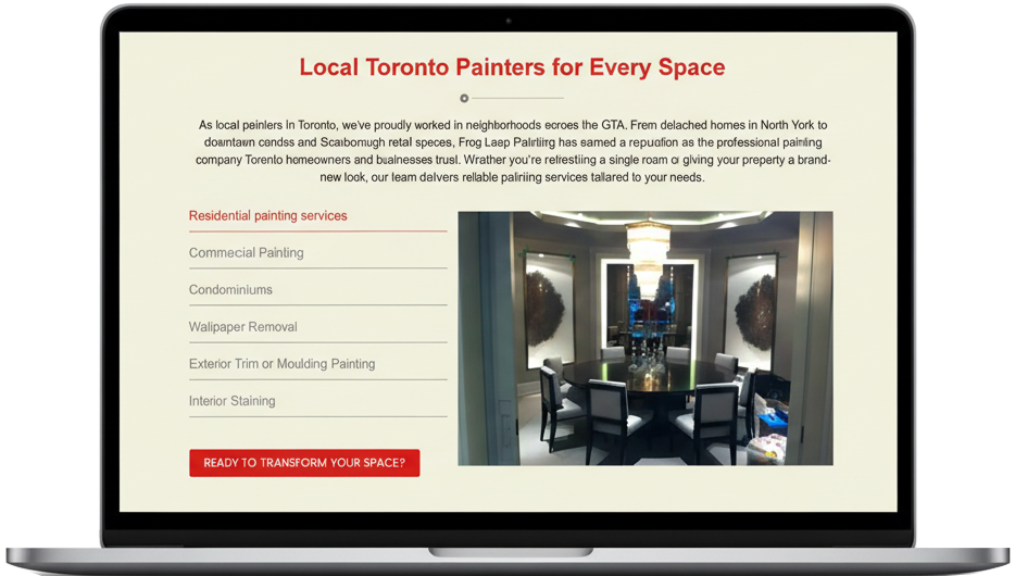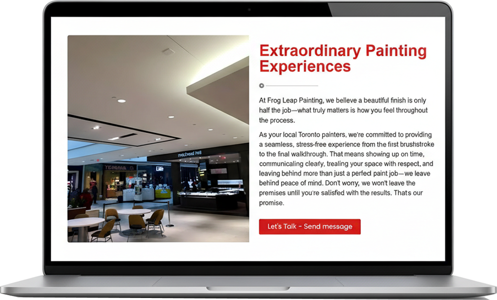 Frog Leap Painting is a professional residential and commercial painting company serving Toronto and surrounding areas. With over 40+ years of experience, the company has built a strong offline reputation, but its digital presence needed improvement to compete in the modern market.