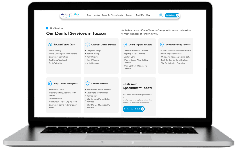 Simply Smiles at Arrowhead approached Digital Scaled to transform their digital presence, aiming to attract new patients, streamline appointment booking, and communicate trust and professionalism through a modern, user-friendly website. The goal was to create a patient-centric online experience that reflects the high-quality dental care offered by Dr. Juan Valencia and his team.