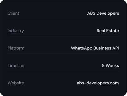 How we helped ABS Developers transform property buyer interactions with an intelligent chatbot — reducing response times and boosting satisfaction.